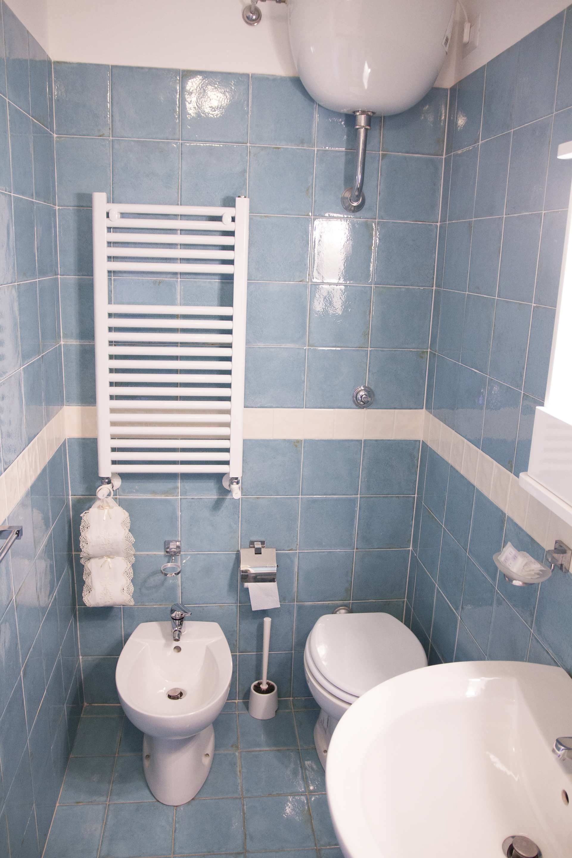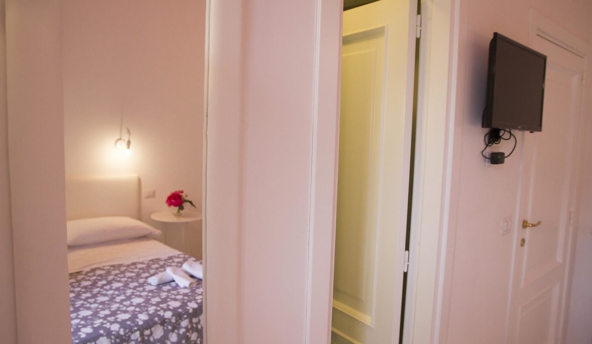 Tu meriti Lode con i suoi colori e la volta antica delle case procidane. La camera matrimoniale ha la possibilità di letti divisibili a singolo, è ampia e graziosa, con un